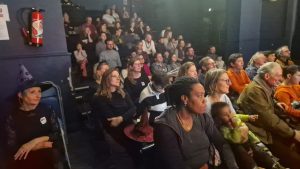Ale skąd pomysł na teatr w andrzejki? To zagadnienie wyjaśniła na scenie pani Natalie Moreno-Kamińska, która przyjechała do Croix z Łodzi, gdzie na Uniwersytecie Łódzkim prowadzi badania nad polskim dziedzictwem teatralnym poza granicami kraju. Pani Natalie pracuje z dziećmi i młodzieżą, co było widać w żywej relacji z publicznością.